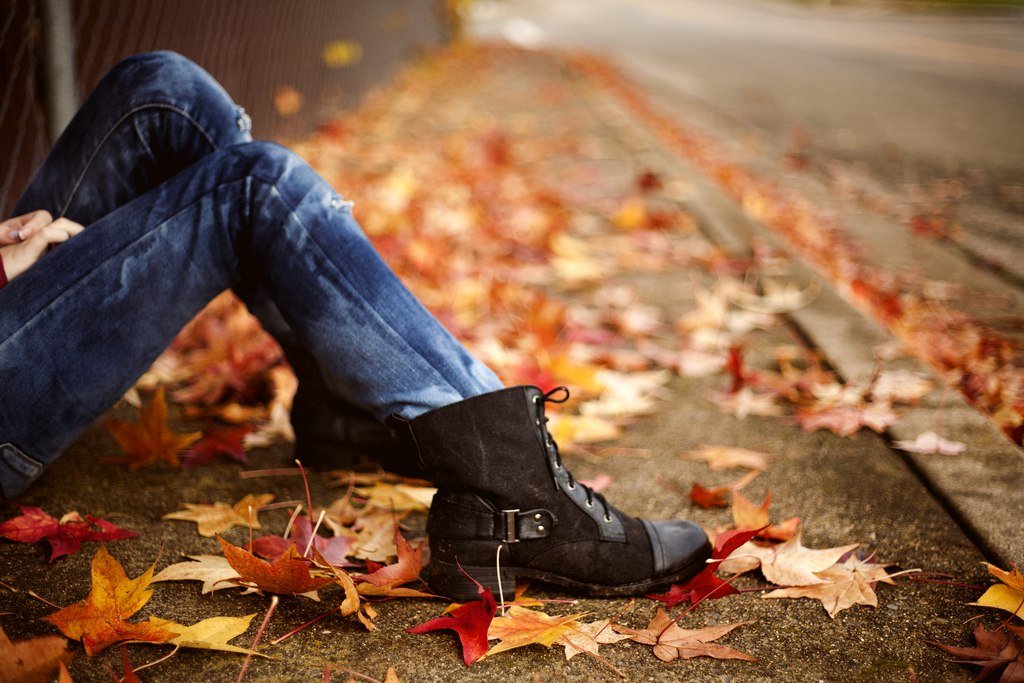 Ноги в осенних листьях