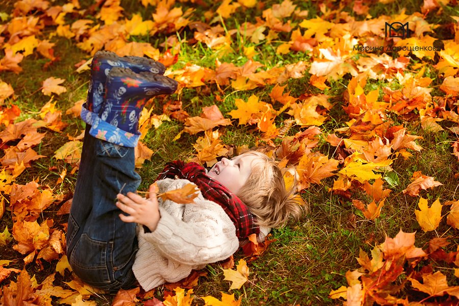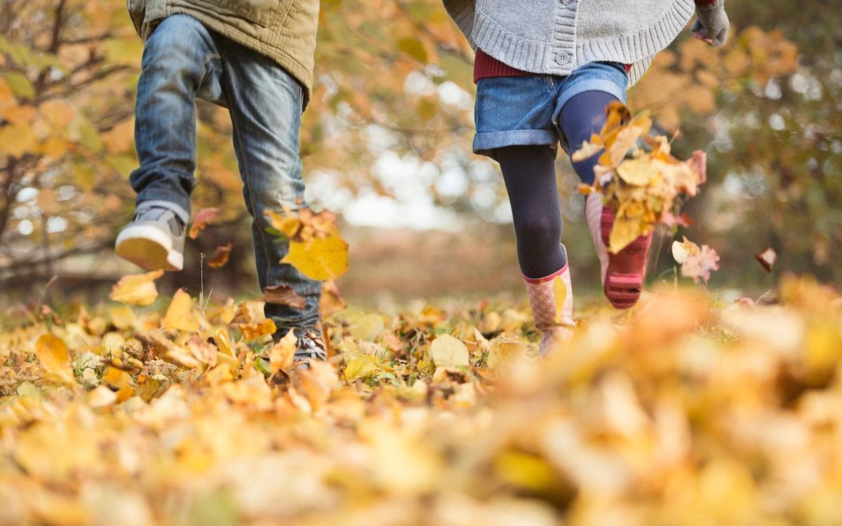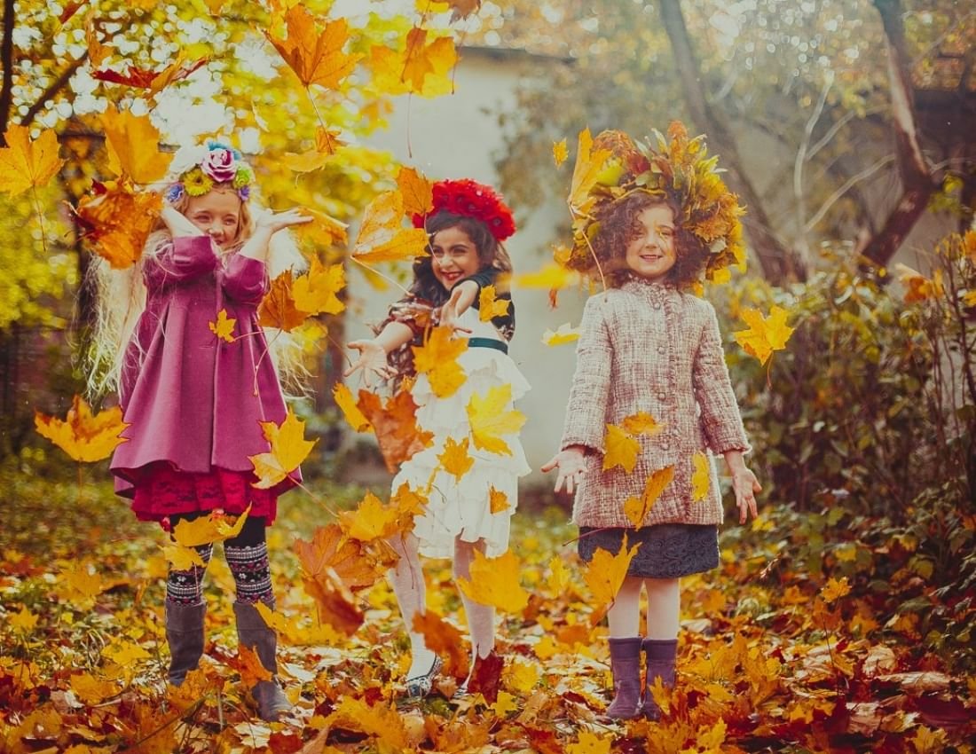 Дети в осенней листве