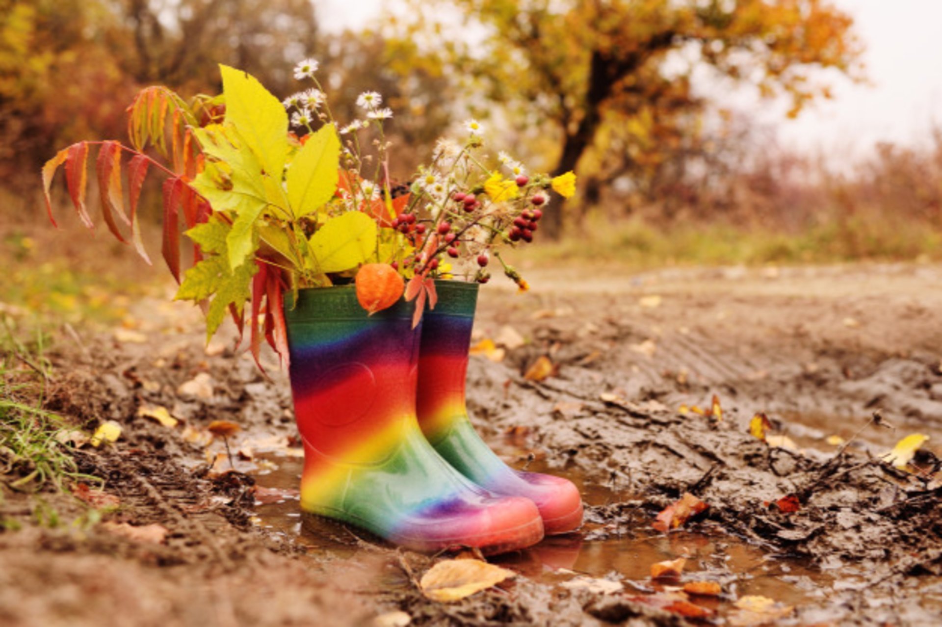 ![Резиновые сапоги в луже]()