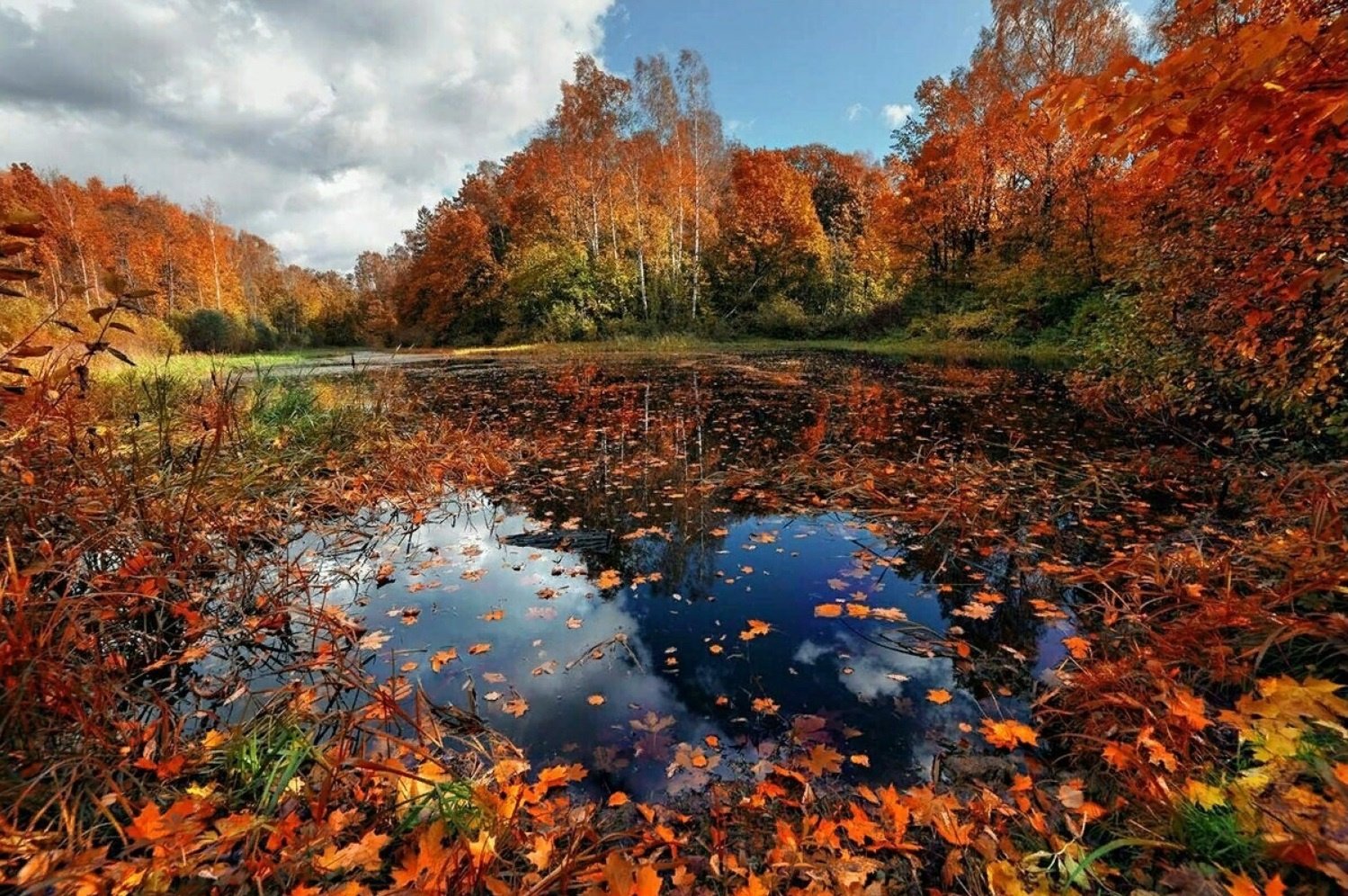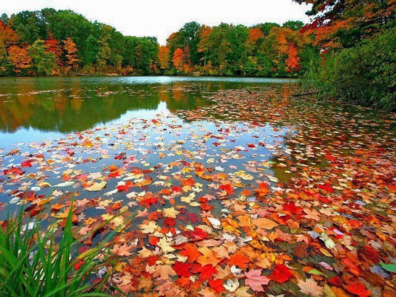 Осень пруд листья