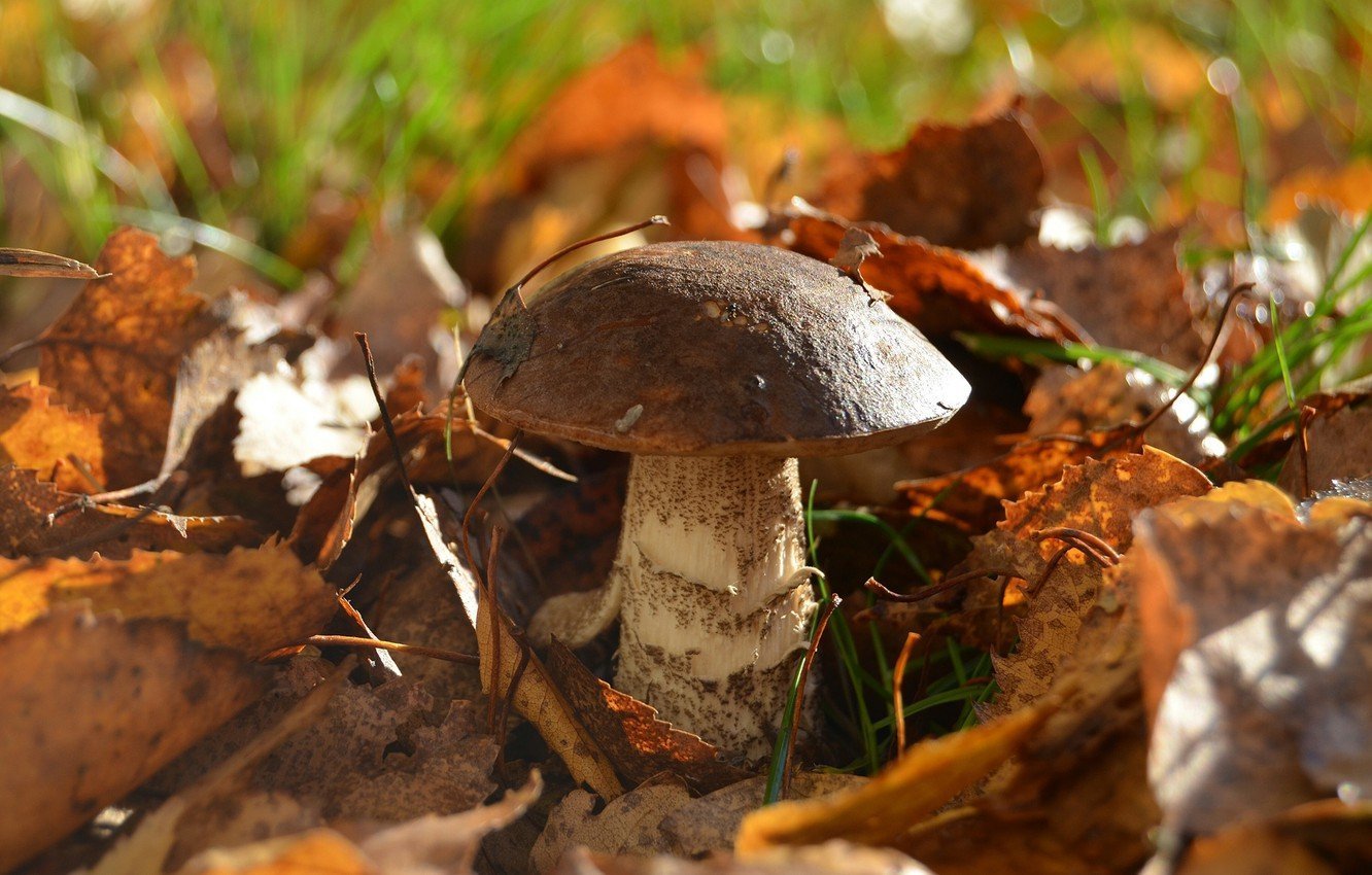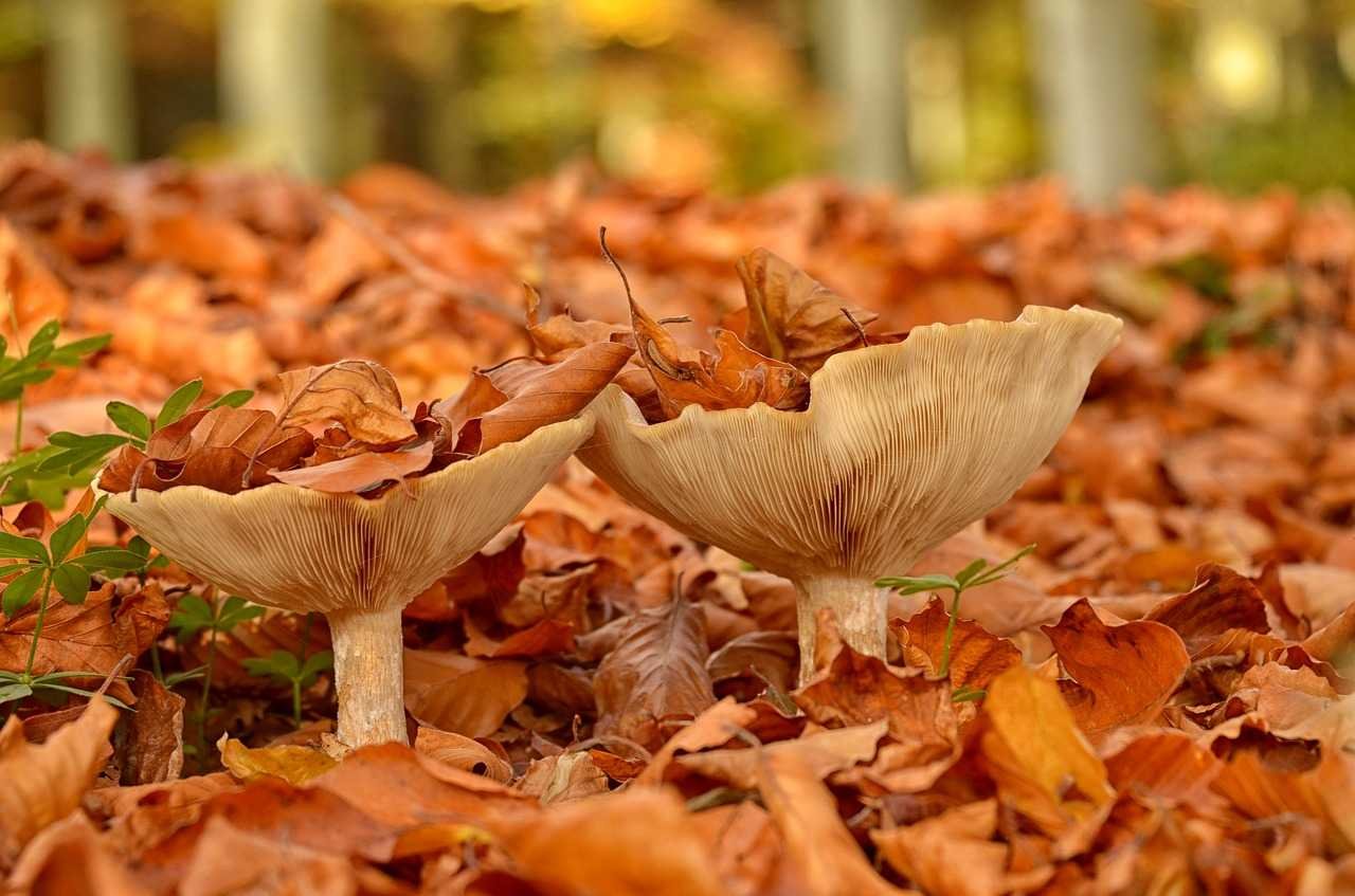 Грибы в осенней листве