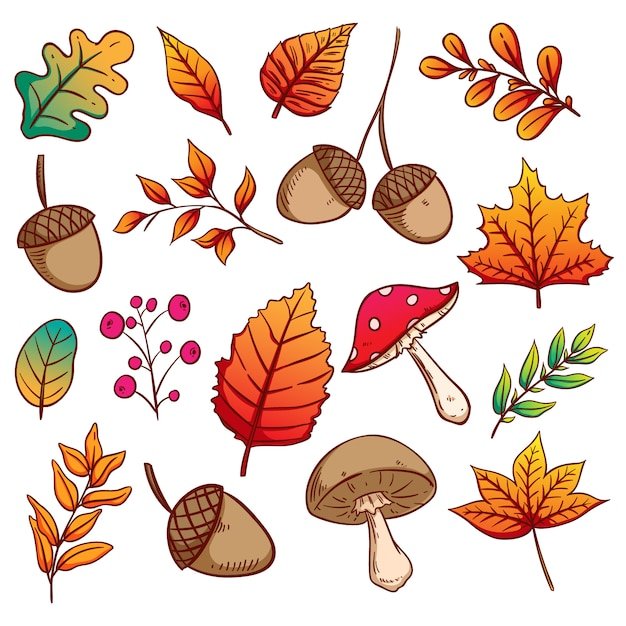 ![Осенние листья и желуди]()