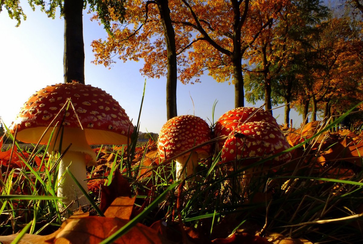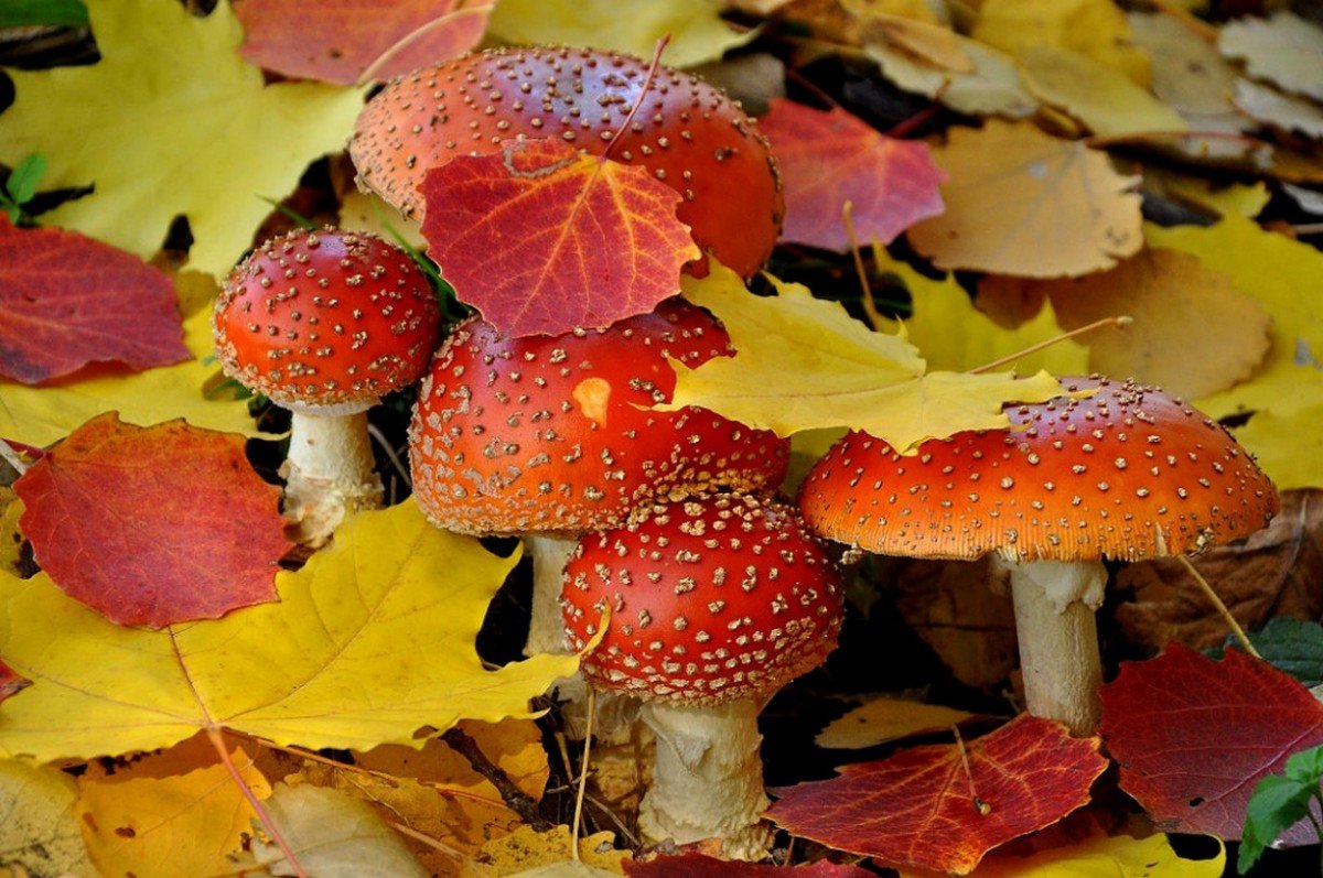 ![Осень грибы мухоморы]()
