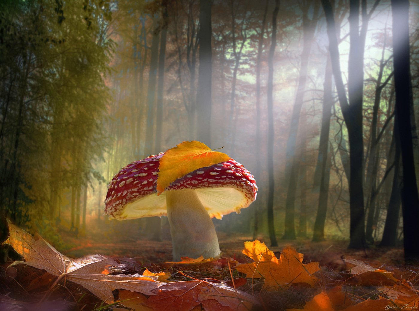 Гриб с осенним листиком