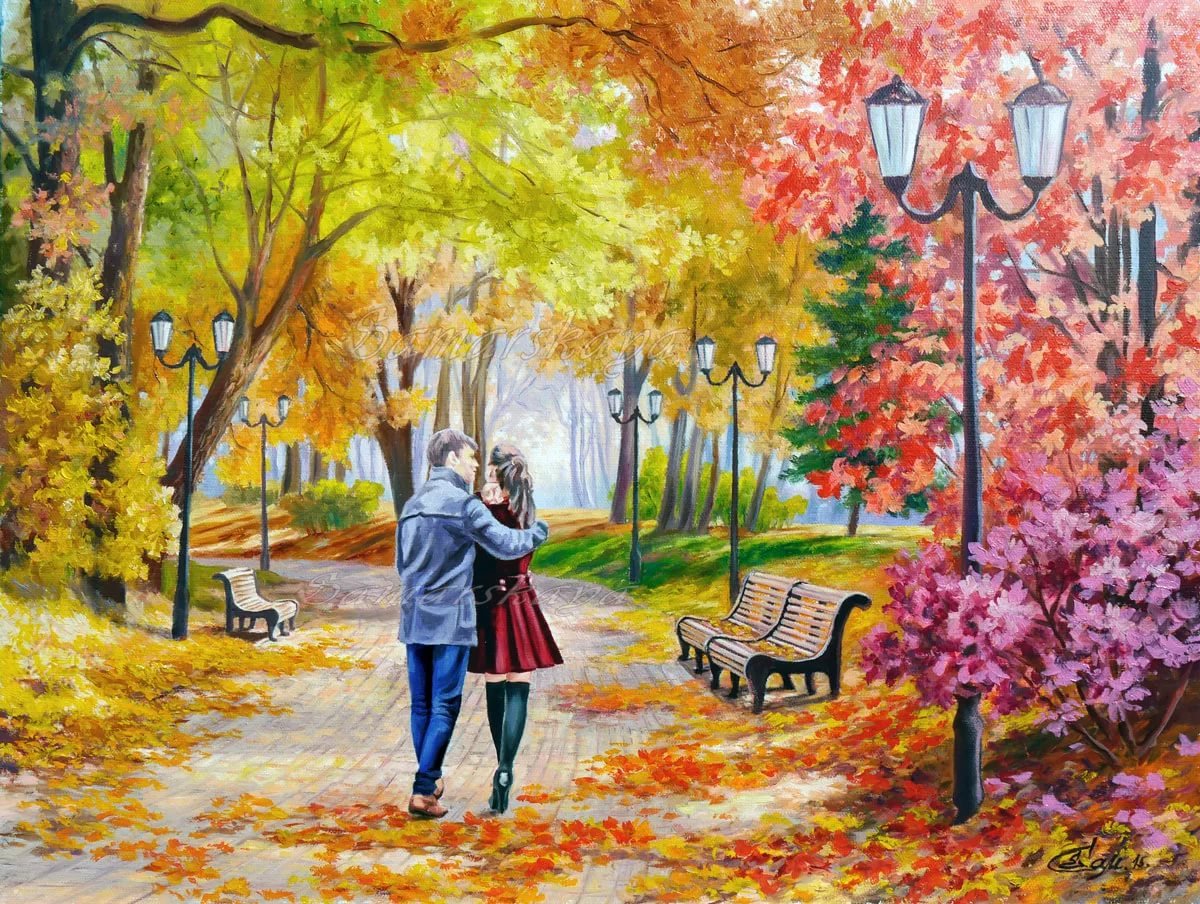 Белоснежка картина по номерам "осенний парк" 40х50 см (527-CG)