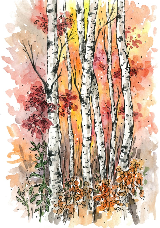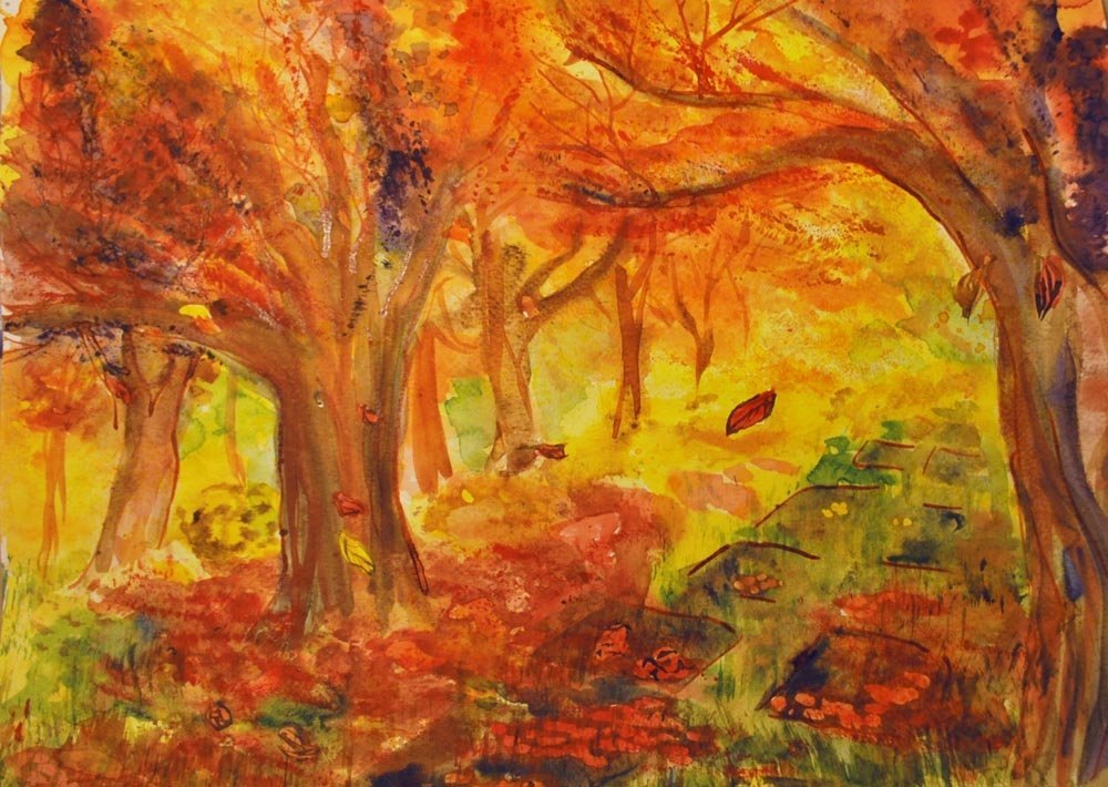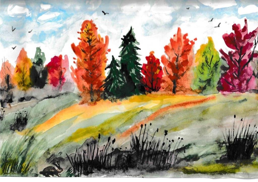 Осенний пейзаж акварелью