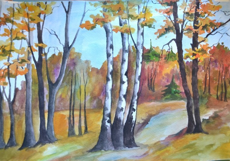 Рисование осенний лес