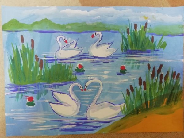 Лебеди на озере рисунок