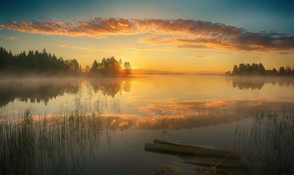 ![Озеро туман рассвет]()