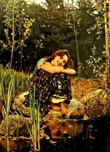 Пройдя сквозь густой лес, Аленушка добралась до живописного озера, окруженного высокими соснами и цветущими лугами. Вода в озере сверкала яркими отблесками солнца, а на берегу раскинулись пасторальные пейзажи, напоминающие картины из старинных сказок. Аленушка устремила свой взгляд вдаль, наслаждаясь тишиной и спокойствием этого уединенного места, словно она сама стала частью этой удивительной картинки природы.