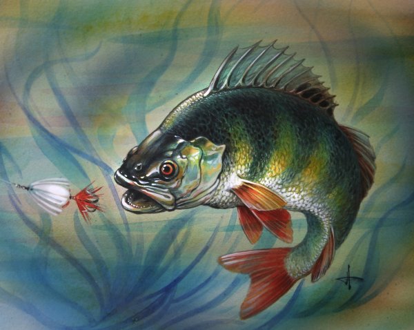 ![Окунь на крючке]()