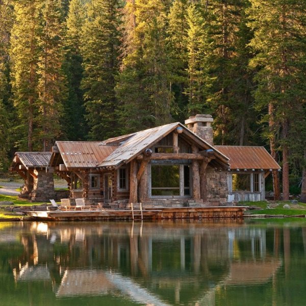 ![Дом у озера штат Монтана]()