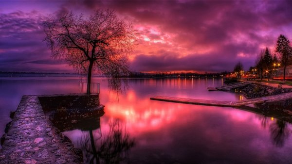 Фиолетовый закат на озере