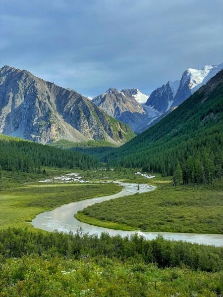 На фоне величественных гор алтайского хребта раскинулись изумрудные озера и живописные реки, создавая неповторимую картину природы. Бирюзовая гладь воды озер напоминает зеркало, отражающее яркие краски окружающей природы, а бурные реки стремительно несут свои воды сквозь горные ущелья и лесистые берега. Алтайский край богат разнообразием ландшафтов и природных уголков, каждый из которых словно вырезан из поэтической картины, запечатленной временем.