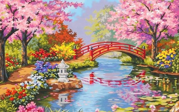 ![Весенний парк живопись]()