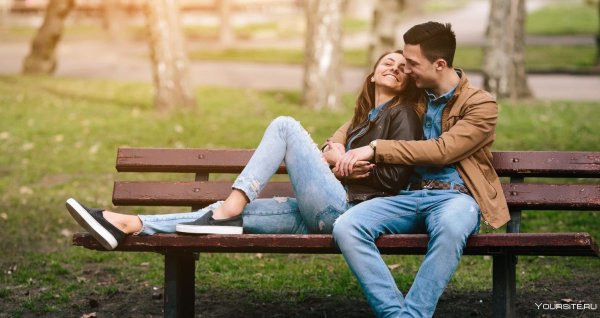 Влюбленные в парке на лавочке