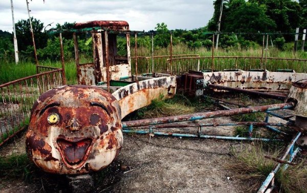 ![Страшный заброшенный парк аттракционов]()