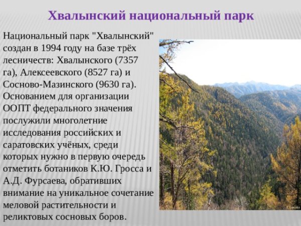 Национальный парк Хвалынский в Саратовской области проект