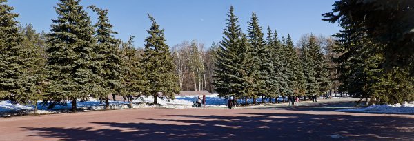 Москва парк Победы аллея голубых елей