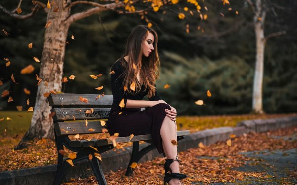 Женщина в парке на скамейке осенью