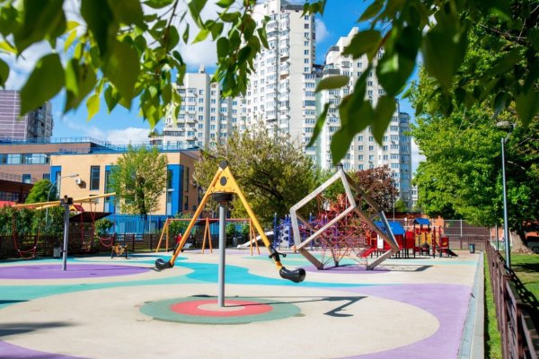 Яркая и красочная детская площадка в парке - это место, где малыши могут беззаботно играть и развиваться. Здесь можно найти качели, горки, карусели и другие аттракционы, которые сделают времяпрепровождение детей незабываемым. Радуга цветов, улыбки на лицах детей и звуки веселых игр создают атмосферу радости и веселья. Детская площадка - это место, где дети могут поделиться эмоциями, завести новых друзей и насладиться игрой на свежем воздухе.
