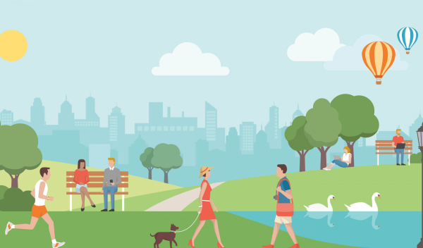 ![Парк мультяшный с людьми]()