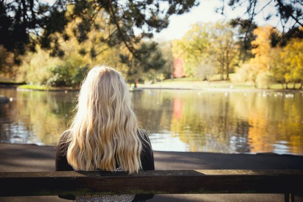 ![Женщина в парке со спины]()