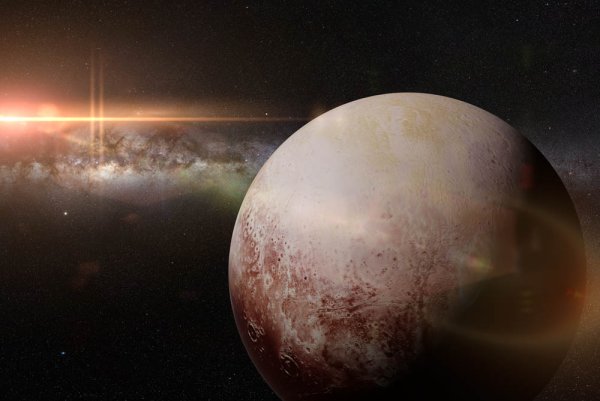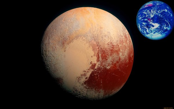 ![Плутон на фоне земли]()