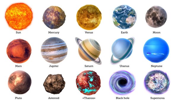 Планеты солнечной системы (Меркурий, Венера, Юпитер, Нептун).