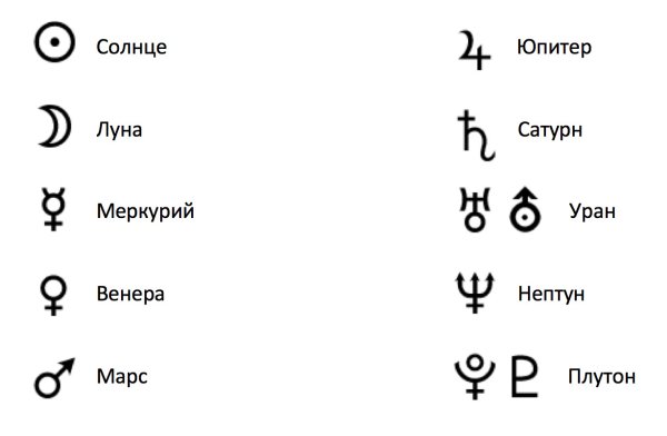 ![Астрологические обозначения планет]()