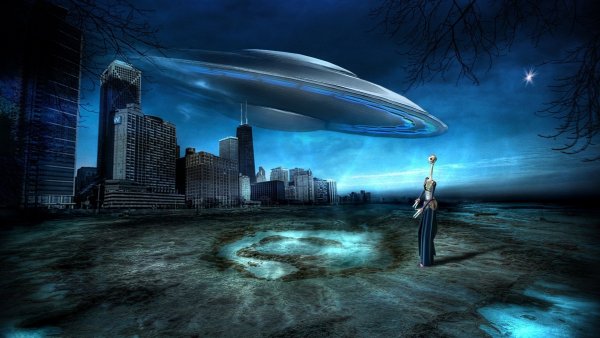 ![Летающие тарелки и пришельцы из космоса]()