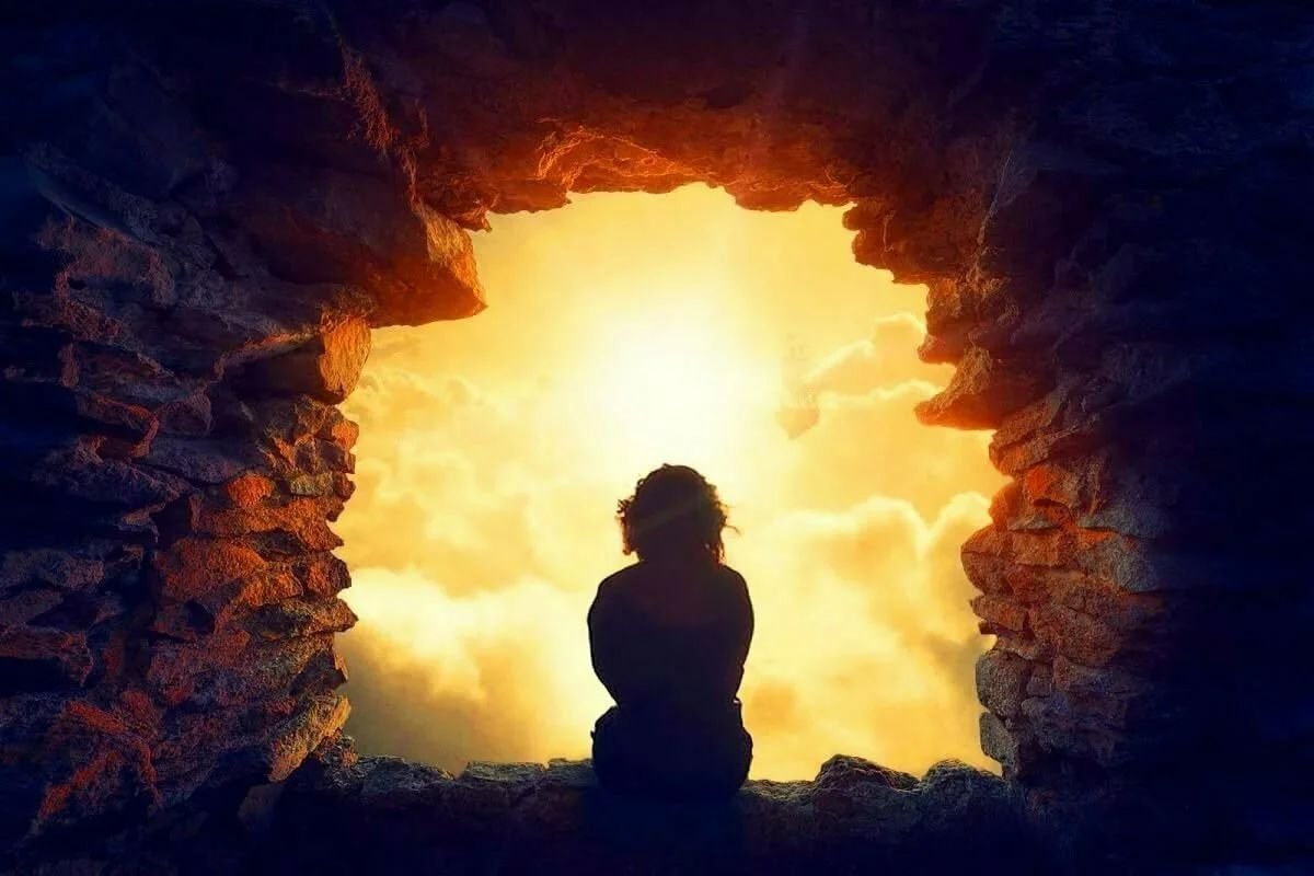 ![Человек уходит в небо]()