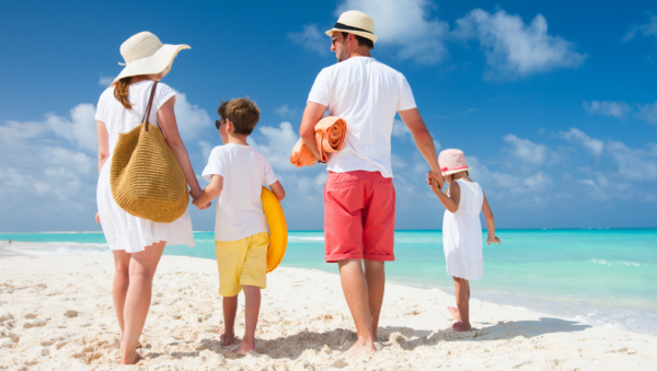 ![Семейный отдых на пляже]()