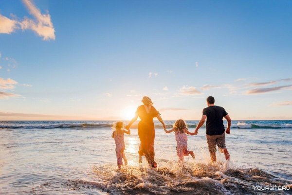 ![Семья на берегу моря]()