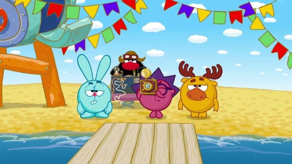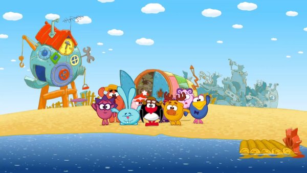 ![Смешарики на пляже]()