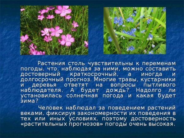 Растения-предсказатели погоды - это удивительные растения, которые способны предсказывать изменение погоды на основе своего поведения. Они реагируют на различные климатические условия, меняя свою форму, цвет или даже закрывая листья. Такие растения стали не только интересным объектом изучения для ученых, но и популярными среди любителей природы, которые используют их сигналы для предсказания погоды. Наблюдать за этими растениями не только увлекательно, но и полезно, ведь они могут помочь подготовиться к грядущим изменениям в погоде.