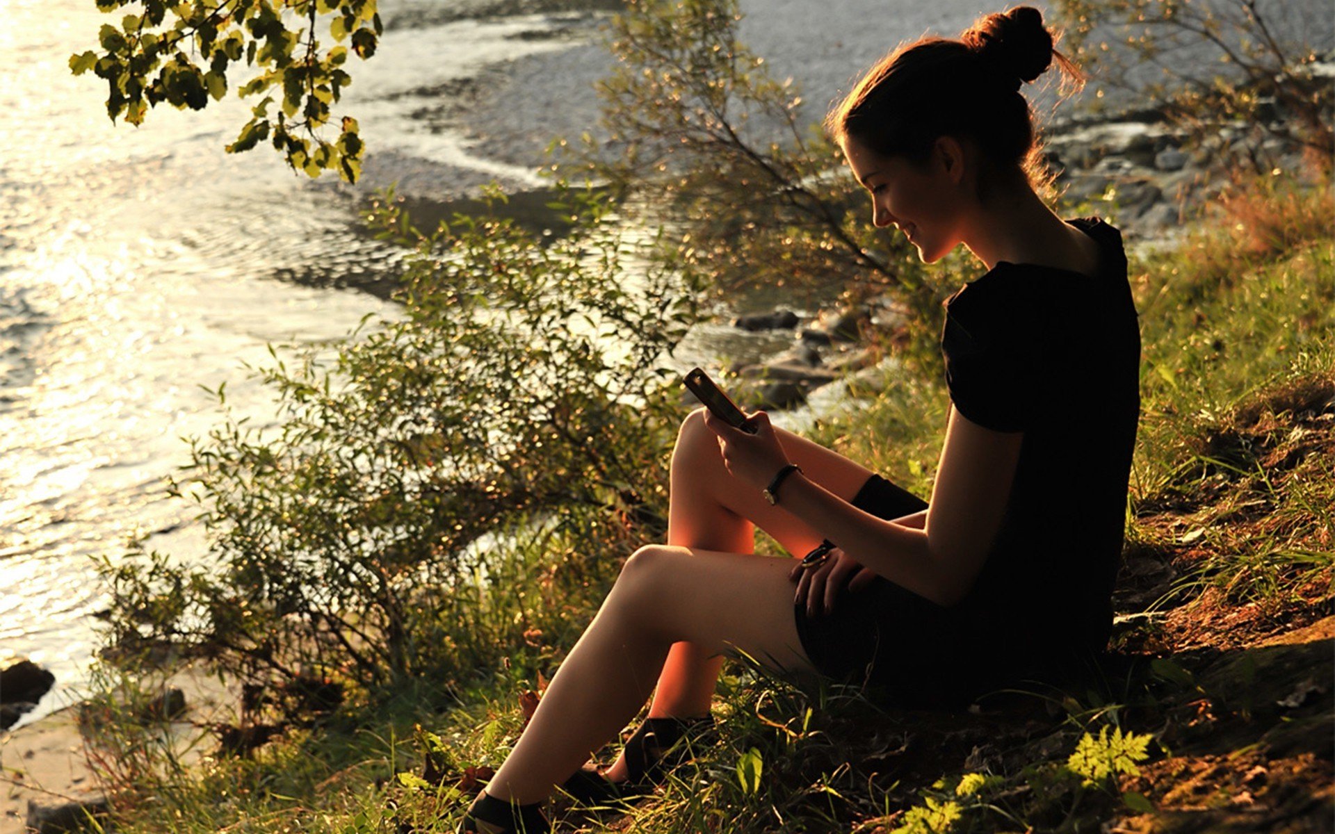 Девушка на мостике у реки