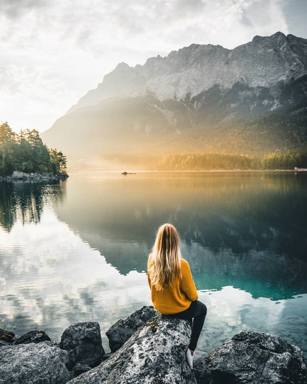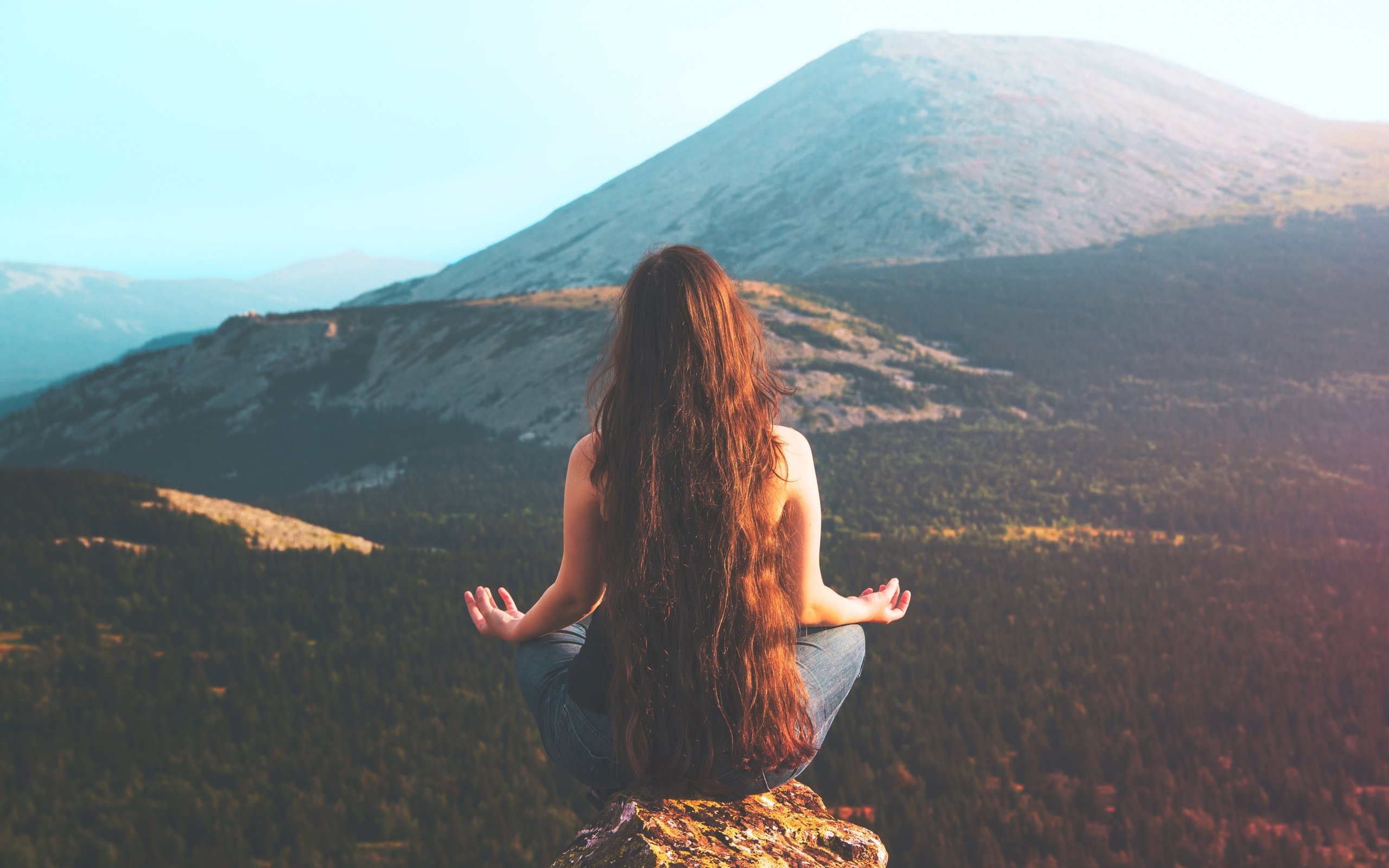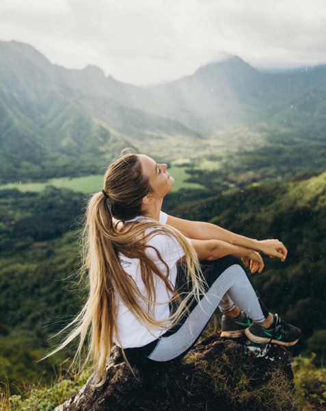 Девушка сидит на горе