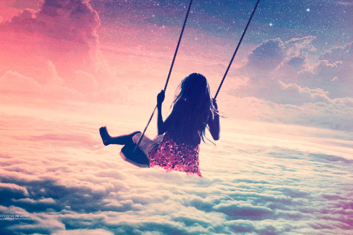 Девушка на качелях в небе