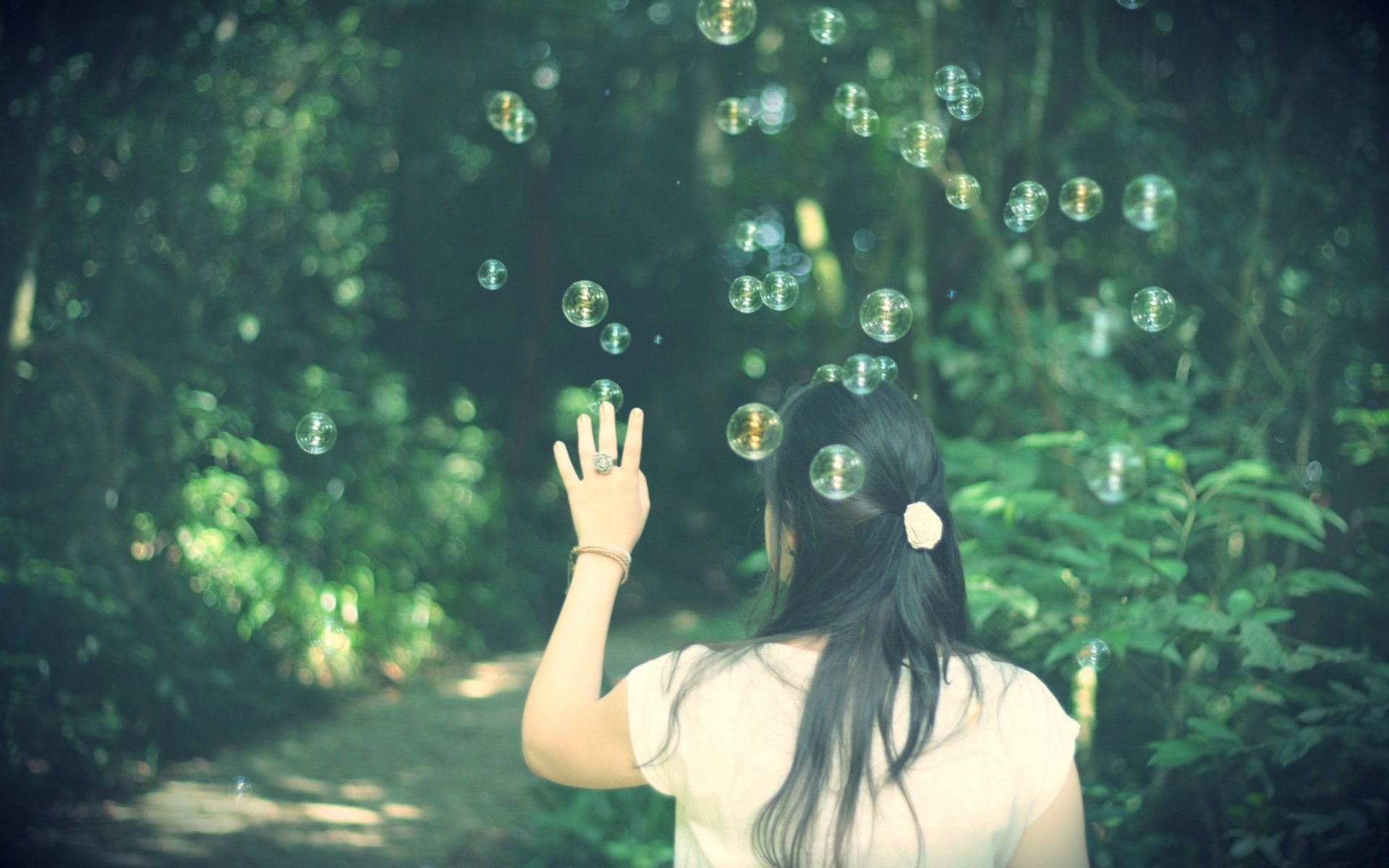 Девушка в цветах со спины