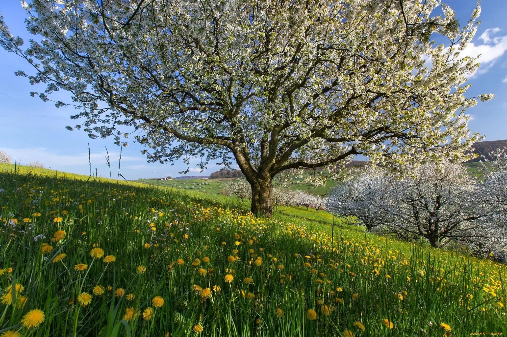 Яркие весенние пейзажи, наполненные цветами и свежестью, идеальны для создания весеннего настроения.