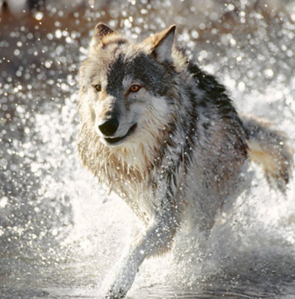 ![Волк бежит вид спереди]()
