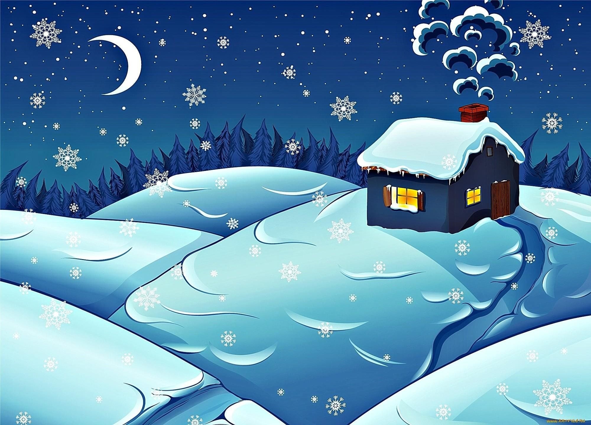 Зимний домик мультяшный