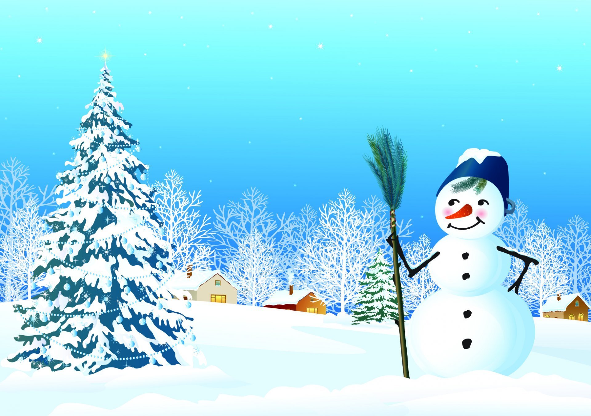 Зимний пейзаж со снеговиком