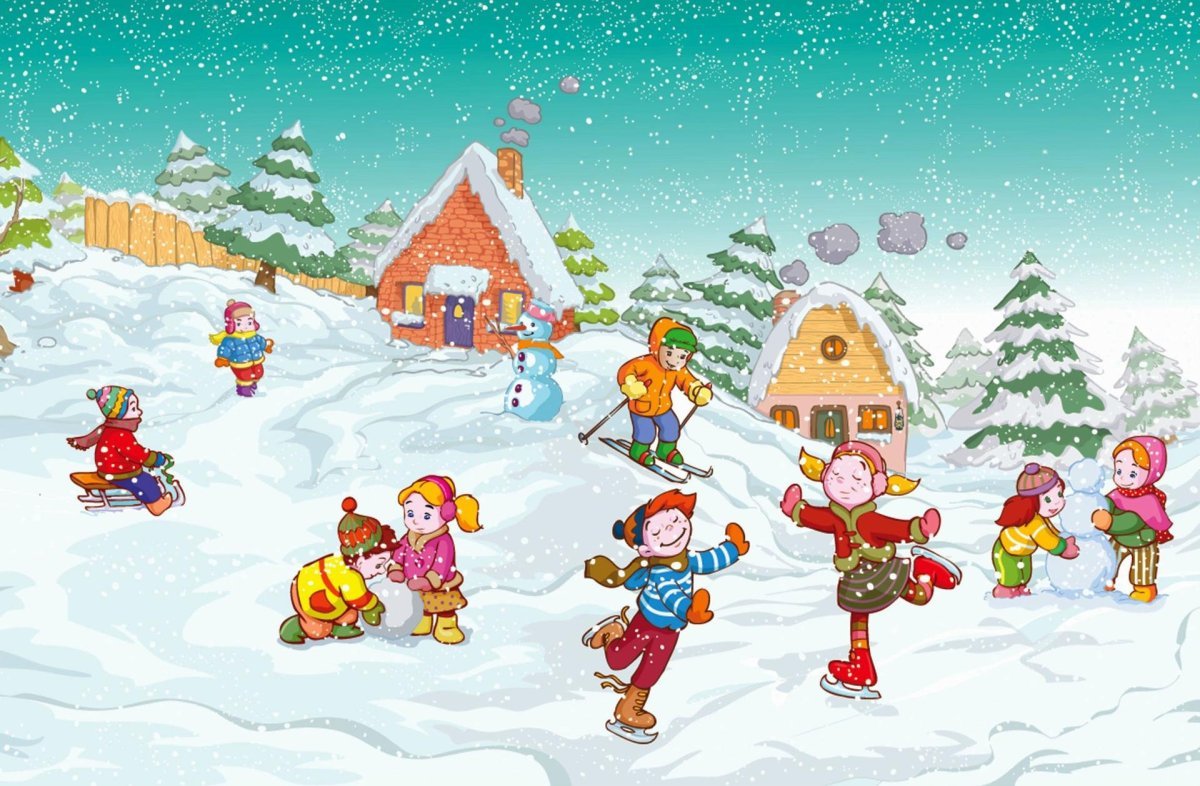 Зима дети мультяшные