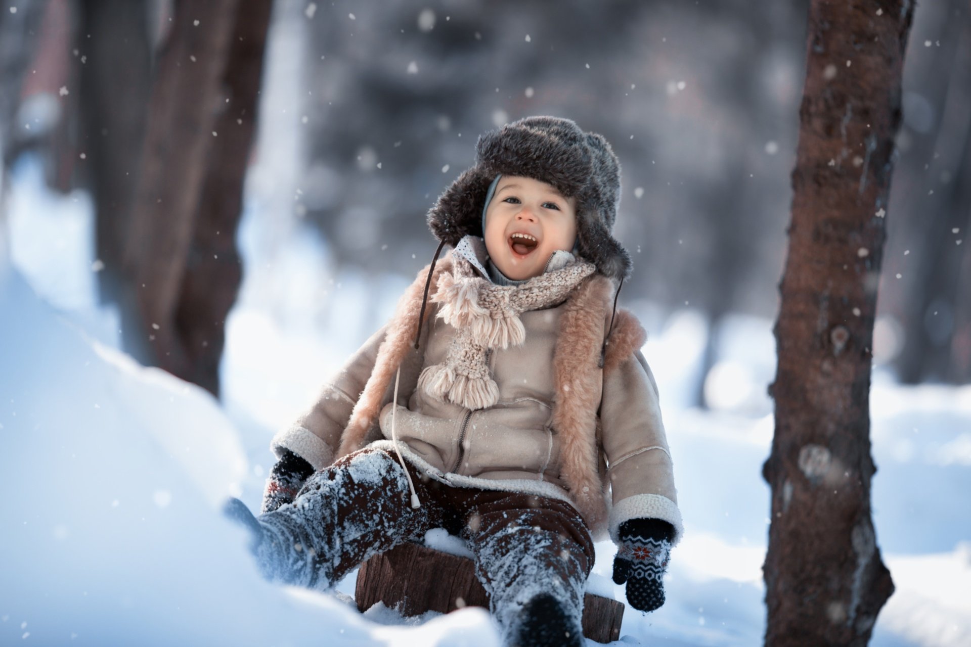 Дети радуются снегу