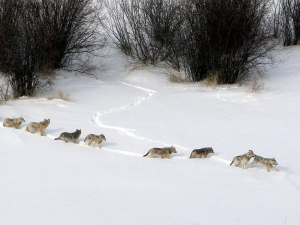 Волк ведёт стаю