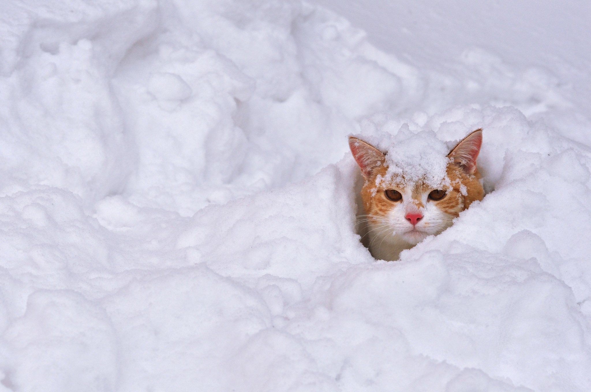 ![Кота замело снегом]()