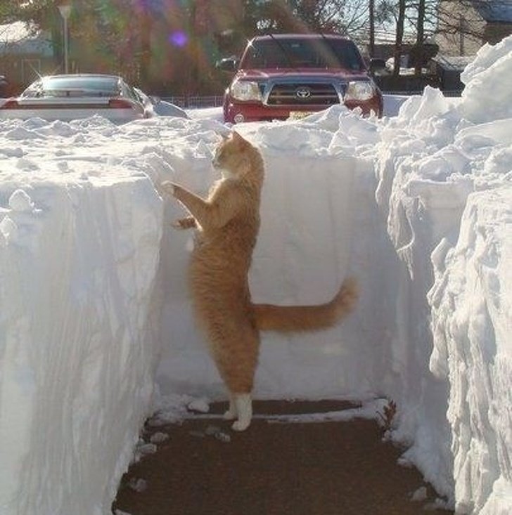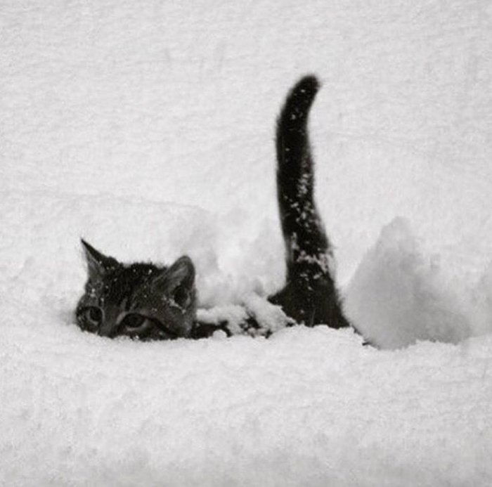 Кот в снегу юмор