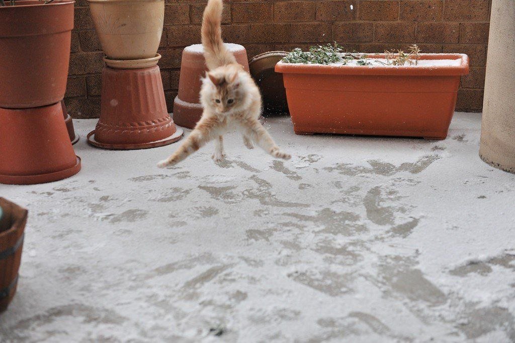 ![Кот в шоке от снега]()